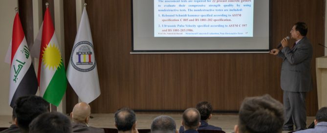 On Sunday, Nov 24th, Civil Engineering Department has arranged to conduct a workshop entitled “Structural Evaluation for Concrete structures by Non – Destructive Test” for Emeritus Professor Dr. Nabeel AbdulMajeed Al Bayati. For the purpose of making the subject more related to practical construction projects, the presenter illustrated the implementation of the test methods to evaluate Muthanna … Continue reading Structural Evaluation for Concrete structures by Non – Destructive Test